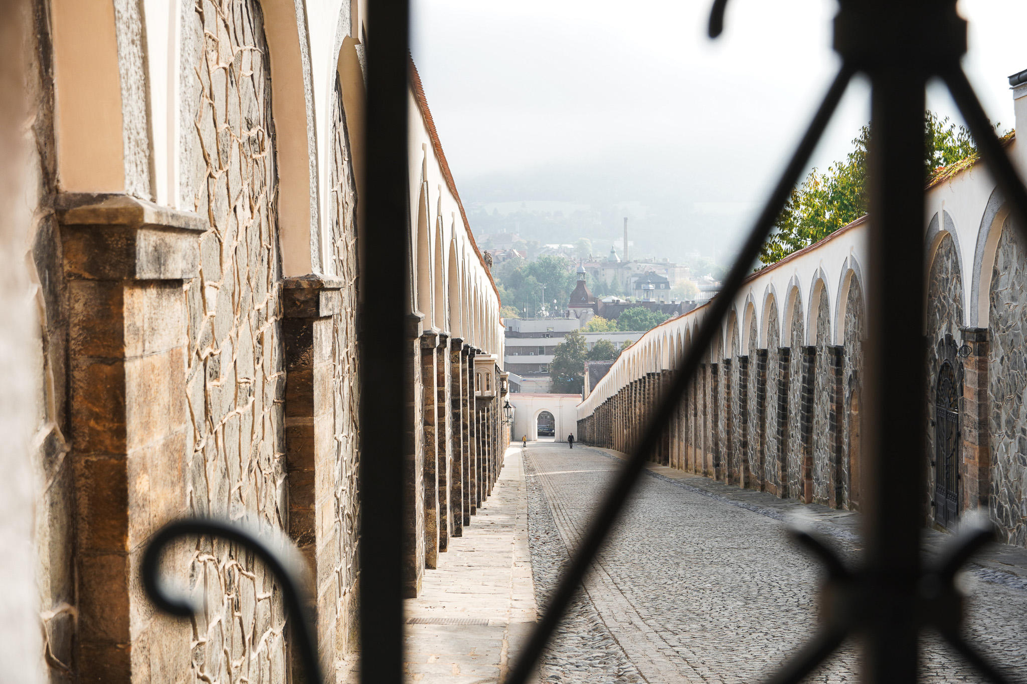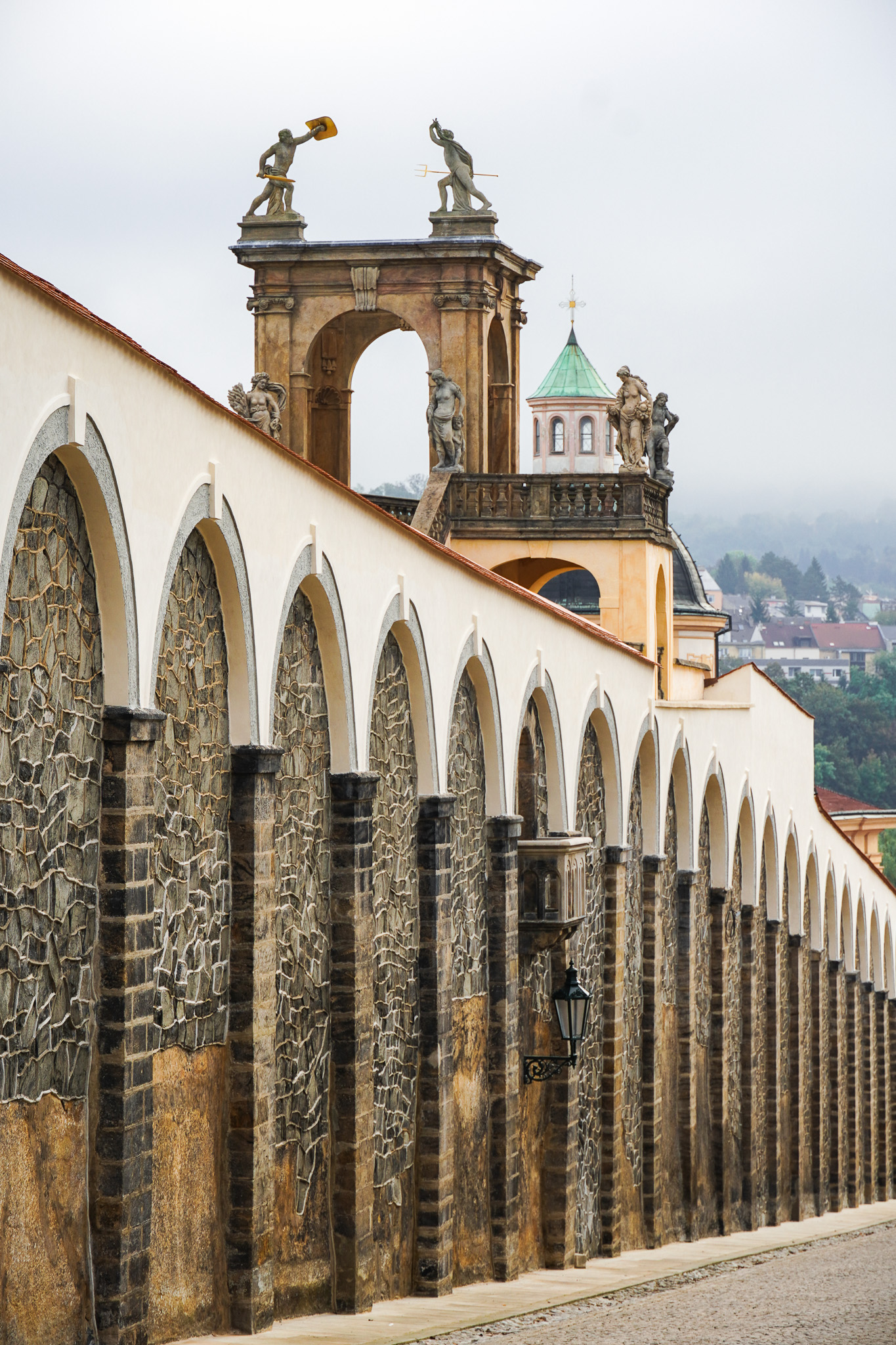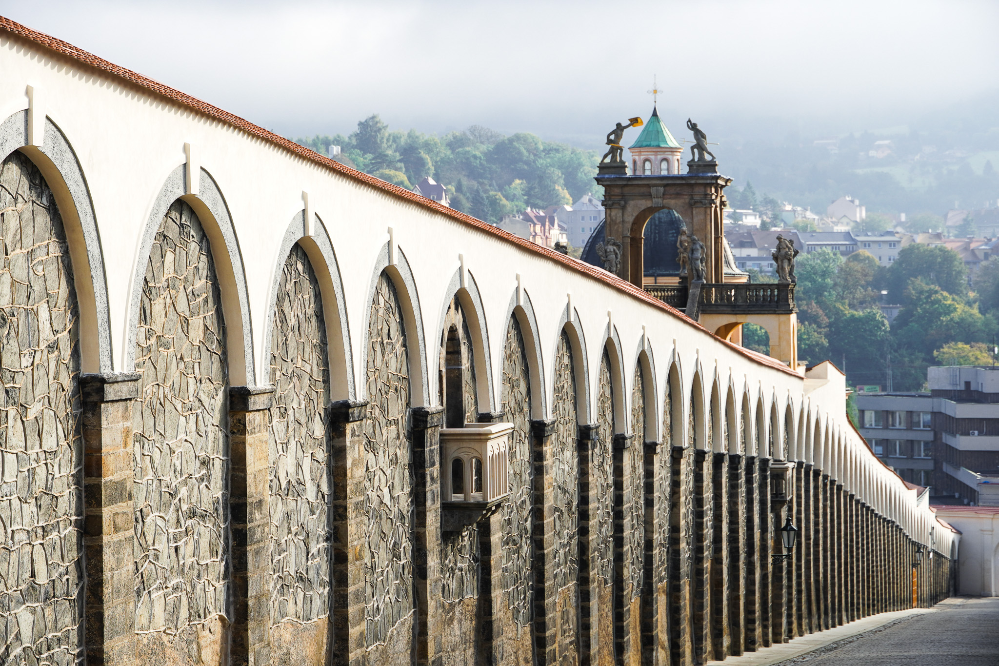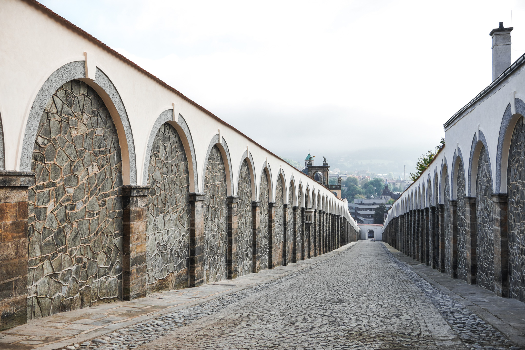 Vznikla v 70. letech 17. století za hraběte Maxmiliána Thuna jako monumentální přístupová cesta k zámku. Terén upravovali horníci z Krupky a cesta se stala osou nové zámecké kompozice. Měří 292 metrů, výška zdí je 7,5 metru, každá strana má 64 arkád. Název se objevuje už v roce 1608, stavba mohla navazovat na starší komunikaci. V 19. a 20. století prošla několika úpravami, včetně ztráty historických bran a části arkád.