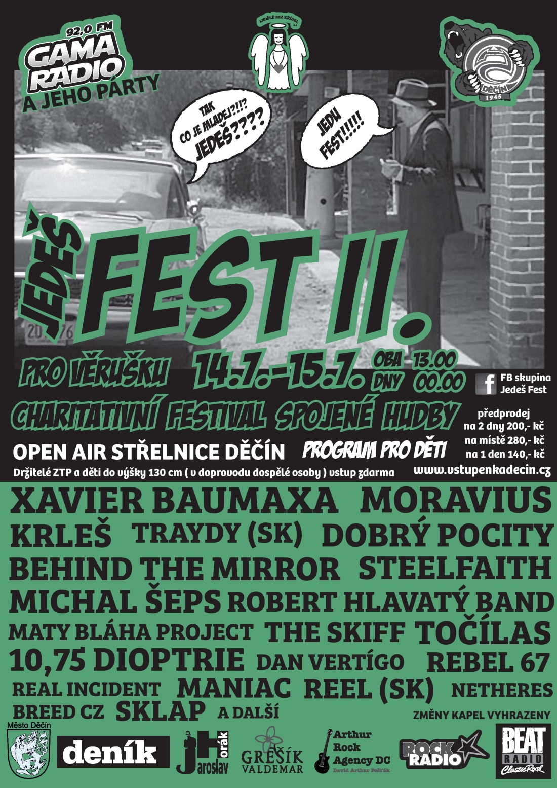 Druhý ročník Charitativního festivalu spojené hudby Jedeš Fest II. se uskuteční v areálu Společenského domu Střelnice v pátek a sobotu od 13 hodin do půlnoci. Na festival pamatovala vyhláška, která upravuje hodiny nočního klidu na konkrétní akce.