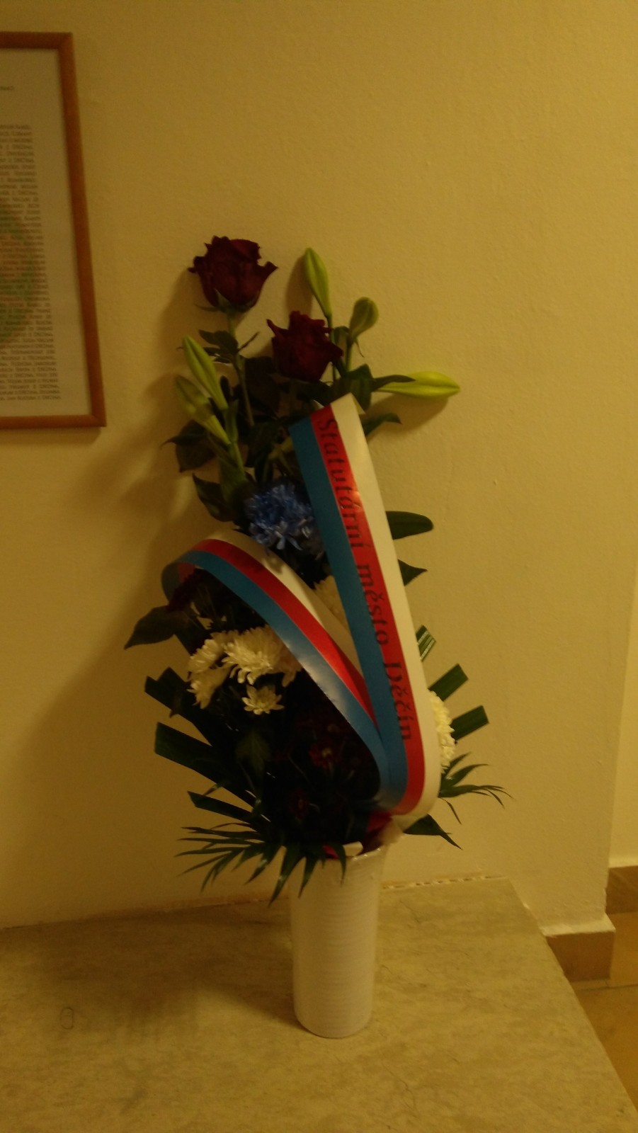 Zástupci města položili odpoledne při příležitosti výročí věnec u budovy magistrátu na Mírovém náměstí a kytici v ulici 28. října.