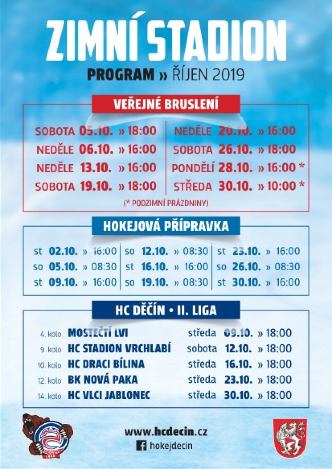Pronájem ledové ploch na jednu hodinu stojí nyní podle nového ceníku 2 000 korun, za dlouhodobý pronájem se hradí částka 1 800 koruna hodinu a stará garda platí pak 1 000 korun za hodinu. Vstupné pro dospělého na veřejné bruslení bude 50 korun, pro děti do 150 cm 30 korun. Veřejné bruslení probíhá na zimním stadionu vždy od září do března a rozpis najdete na webu HC Děčín.