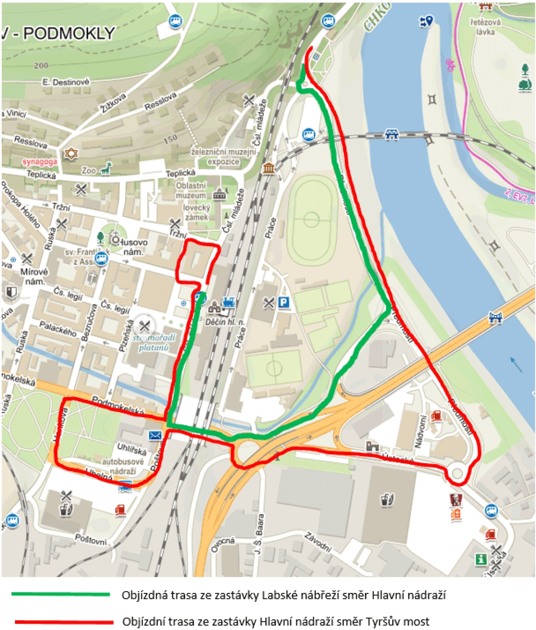 V pondělí 21. 10. 2019 dochází k uzavření ul. Čsl.mládeže v úseku u křižovatky s ul. Teplická. Linky MAD Děčín budou obsluhované po objízdné trase.