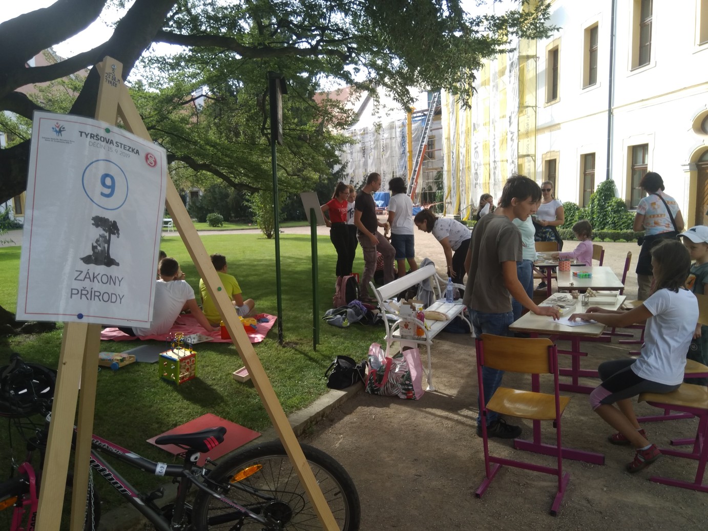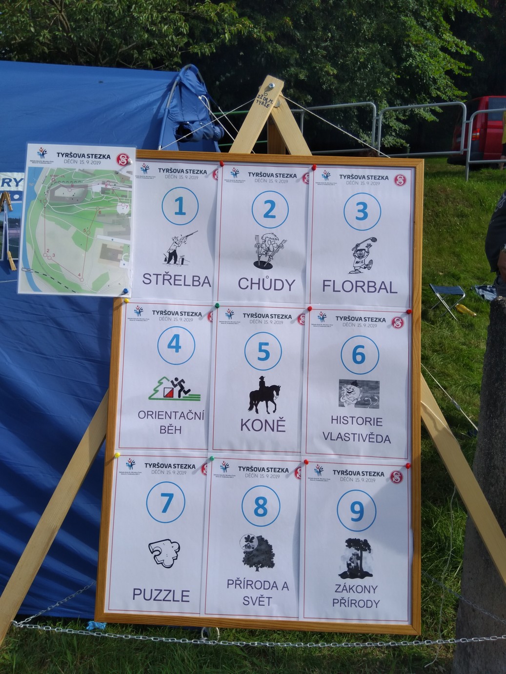 Tyršova stezka je název pro devět stanovišť se sportovními, vědomostními, naučnými i relaxačními úkoly, např. střelba ze vzduchové pistole, jízda na koni, orientační běh a další. Stanoviště jsou rozmístěna po celém areálu děčínského zámku včetně Růžové zahrady, Mariánské louky i Smetanova nábřeží, takže jejich absolvování je zároveň i příjemnou procházkou po krásných místech našeho města. Tyršova stezka je určena pro děti mladšího i staršího školního věku. Děti v doprovodu svých rodičů a prarodičů zahajují stezku v úvodním stanu na Smetanově nábřeží, kde dostanou mapku s jednotlivými stanovišti a vydávají se plnit úkoly. Po absolvování celé stezky pak dostávají odměnu, loni například v podobě balónku, drobných cen a sladkostí. Letos nás čeká již čtvrté pokračování a musím konstatovat, že předcházející tři ročníky byly z pohledu návštěvnosti naší stezky velmi úspěšné.