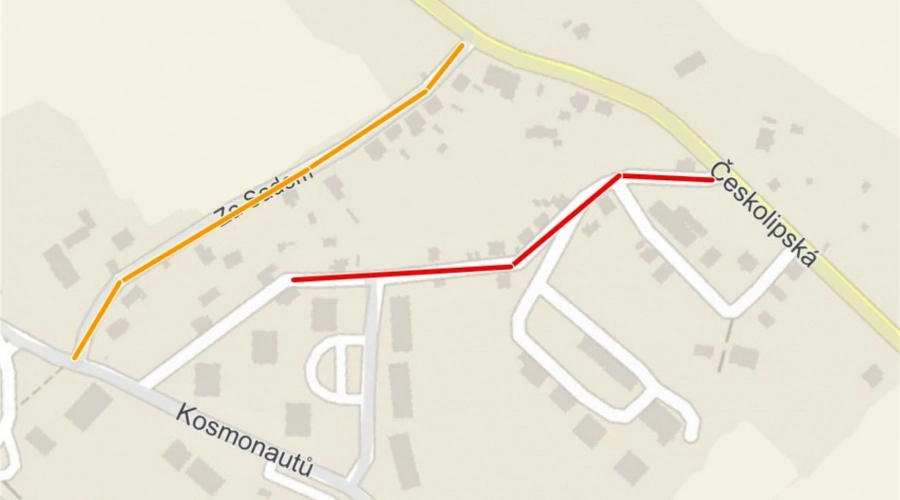 V ulici Za Sadem bude v letošním roce dokončena část vozovky (viz oranžová čára na mapě). Kompletní nová skladba vozovky (obě asfaltové vrstvy) by měla být hotová do konce listopadu. Ve zbylé části ulice je potřeba dobudovat splaškovou kanalizaci. Práce na ní budou probíhat od ledna do března příštího roku, teprve pak se zde lidé dočkají nového povrchu.
