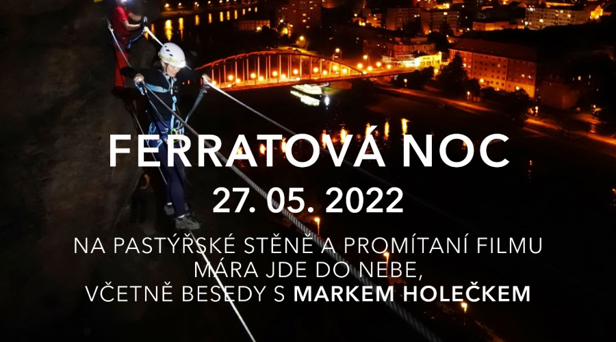 Máme pro vás tip na páteční večer. Nejen že můžete zdolat večer via ferratu na Pastýřskou stěnu s čelovkou, ale v bistru Nad Ferratou se bude promítat film "Mára jde do nebe". Chybět nebude ani beseda s horolezcem Markem Holečkem.