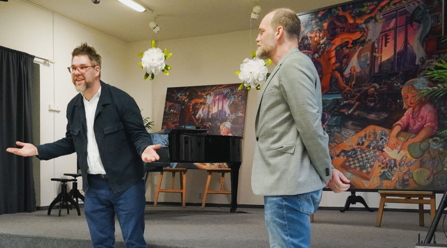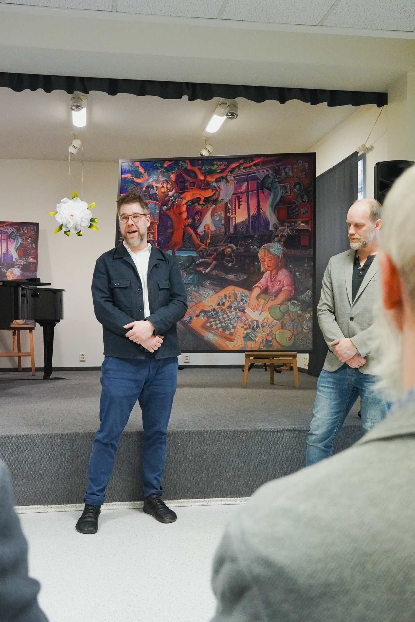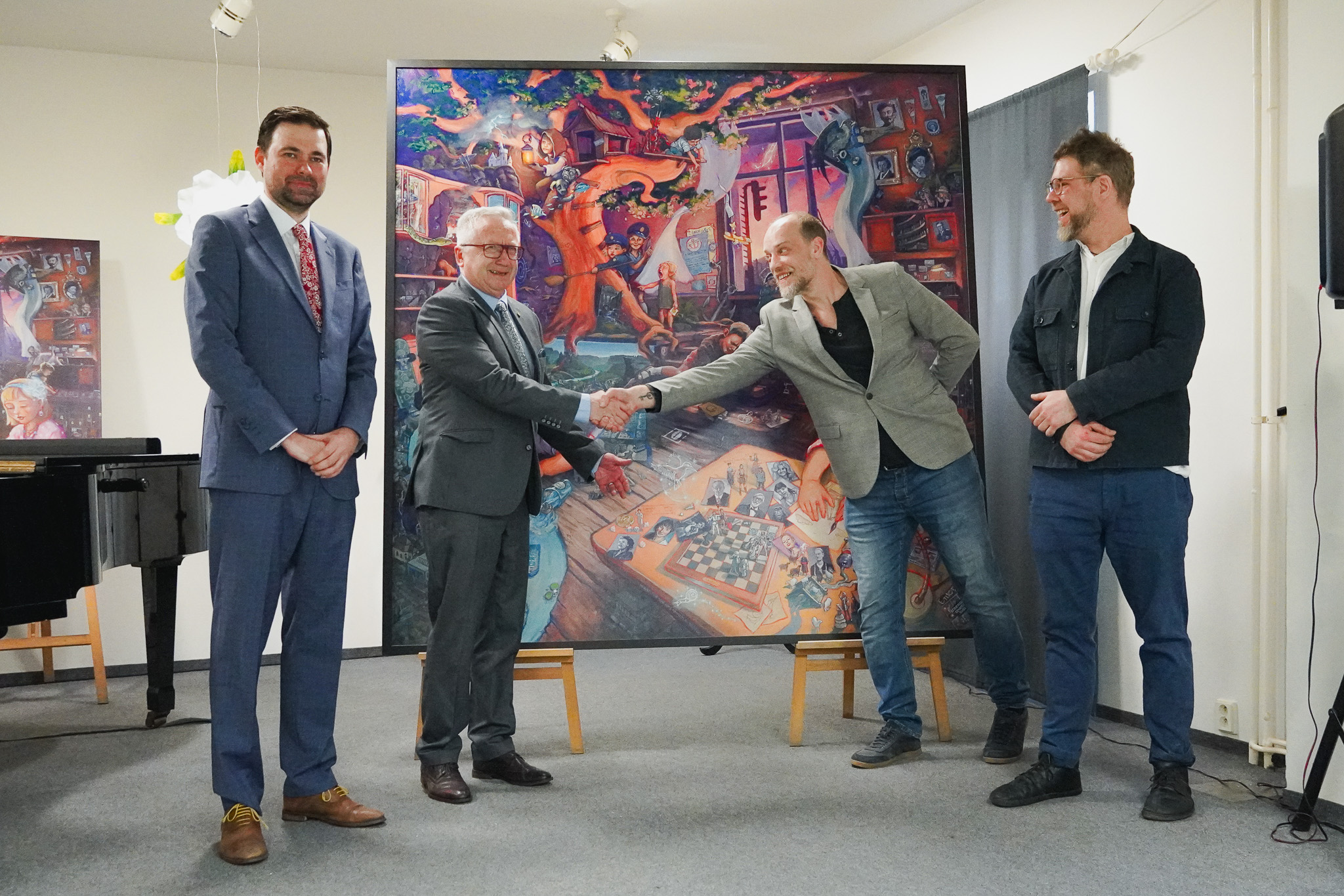 Oba umělci obraz městu slavnostně předali v Základní umělecké škole Děčín v úterý 14. června odpoledne. Současně proběhla beseda s oběma autory a doprovodný kulturní program.