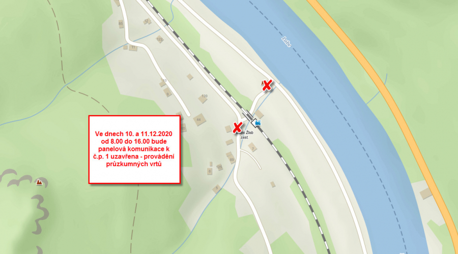 Uzavření panelové cesty v Dolním Žlebu č.p. 1 ve dnech 10. a 11.12.2020