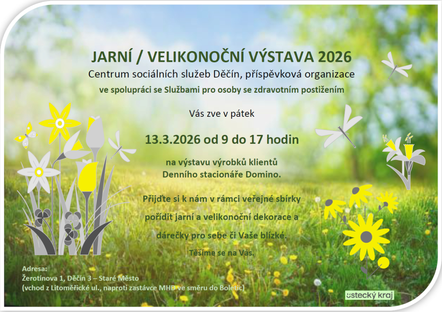 Přijměte pozvání na jarní/velikonoční výstavu Centra sociálních služeb Děčín, příspěvková organizace, ve spolupráci se Službami pro osoby se zdravotním postižením.