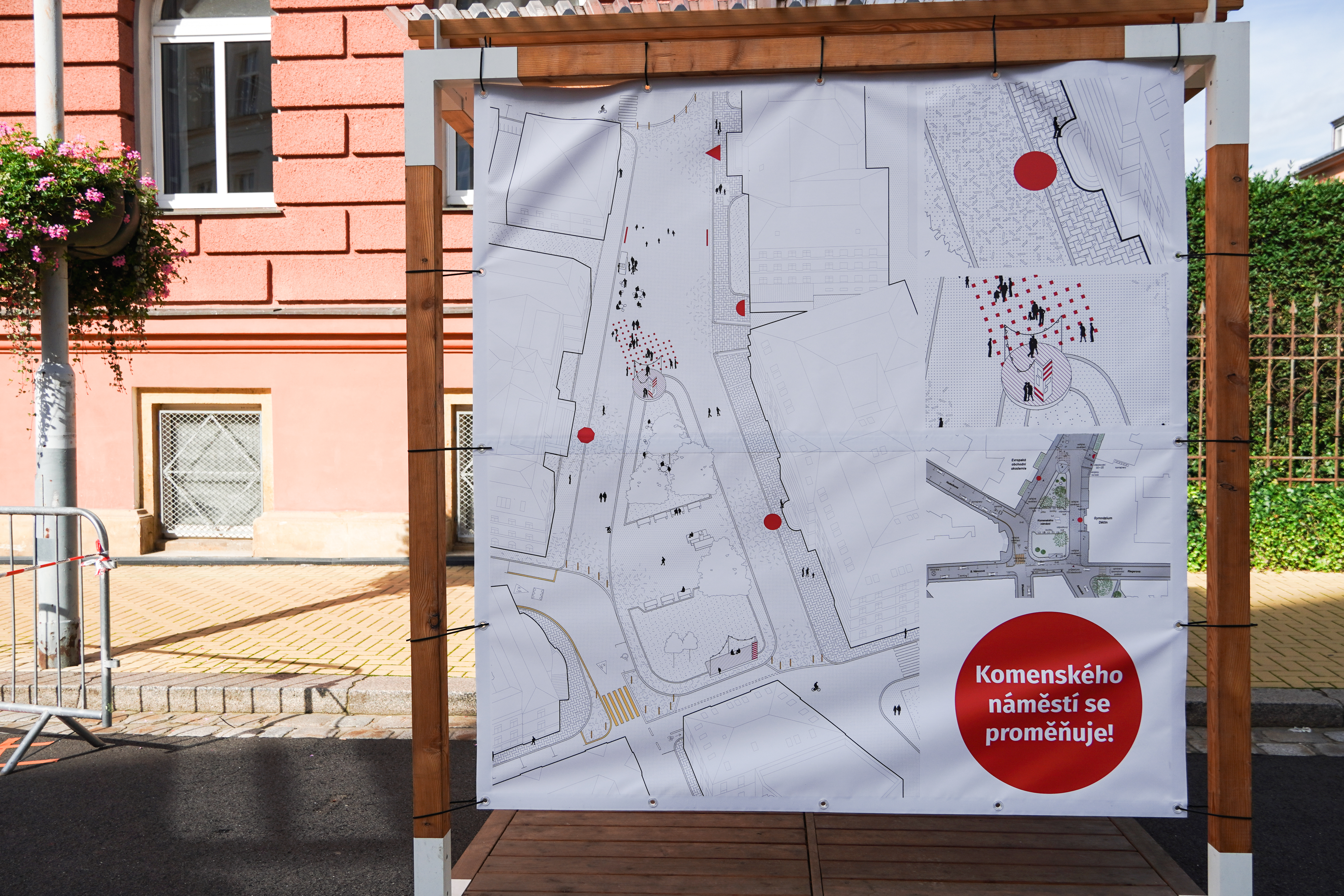 Loni na podzim nás město oslovilo, abychom zpracovali architektonickou studii na úpravy Komenského náměstí. To je již delší dobu ve špatném stavu, na což v minulosti upozornilo několik ročníků studentských happeningů. Byla zde tedy iniciativa ze strany škol, na kterou chtělo vedení města navázat. Proces stavební rekonstrukce však bude trvat ještě pár let. Má proběhnout architektonická soutěž, projektování, stavební řízení, a také musí být dostatek financí.